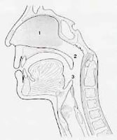 気道(鼻腔<1>・咽頭<2>・喉頭<3>)が狭窄しているためにおきます。さらに上気道が閉塞すると呼吸が停止し換気ができなくなり、一時的に目が覚めてしまいます。