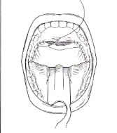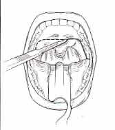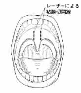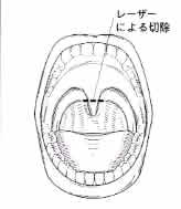上咽頭のスペースを広げるため口蓋垂を含めた軟口蓋下線をメスやレーザーで切除します