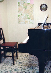 レッスン室には専用のオーディオ機器を完備し、希望があればMDでの録音も可能です。 楽譜に関しては、声楽・ピアノともに豊富にそろえられ、練習用として貸し出しもしています。音楽的文献もたくさんあります。